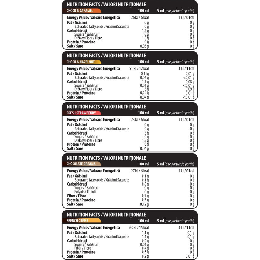 Pentru a fi un rasfat nevinovat pana la capat, nu contine gluten sau lactoza si este disponibil in 5 variante de arome care te fac sa iti lase gura apa: ciocolata, ciocolata & caramel, ciocolata & alune de padure, capsuni proaspete si french creme.